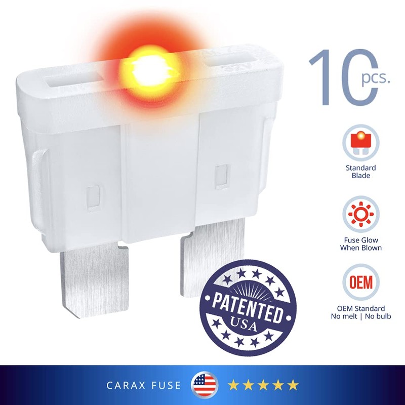 CARAX Glow Fuse – Premium Fuse Standard/Regular Blade ATC/ATO/ATS – 25A Kit 10 pcs – Glow When Blown LED Automotive Fuse – Smart Auto Glow Fuse Easy Identification – 10 pcs.