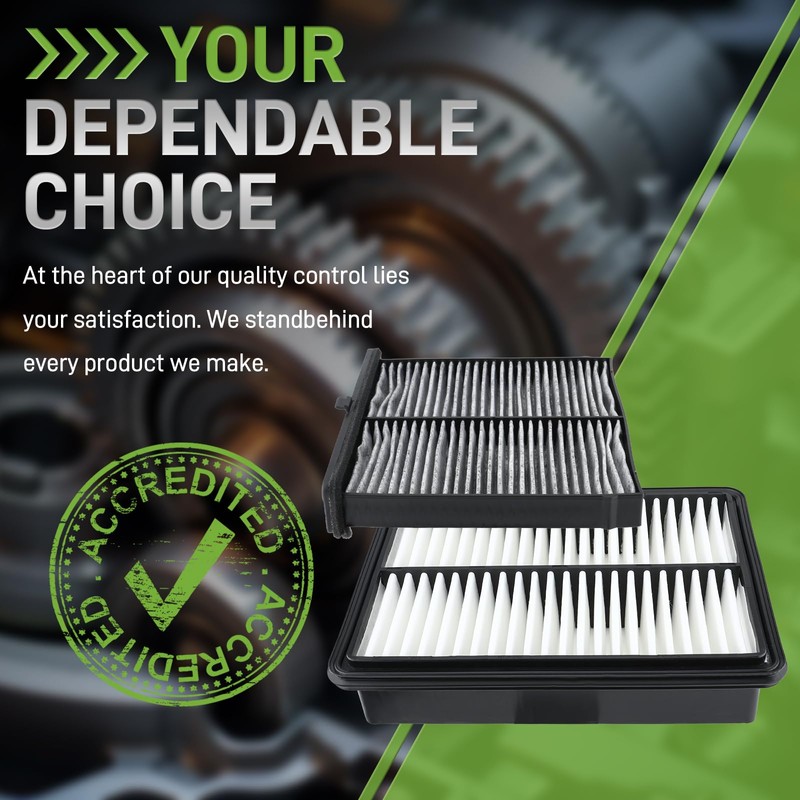 - Package Content: 1 Engine Air Filter, 1 Cabin Filter Element