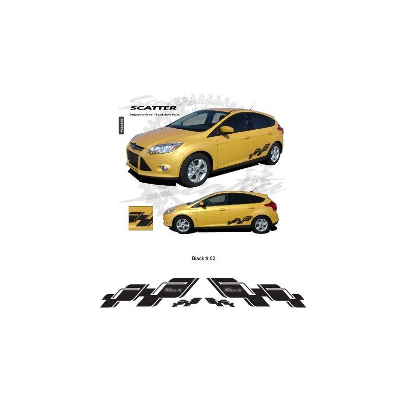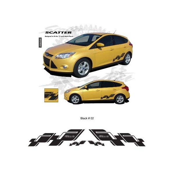 CarBeyondStore, Compatible with - Ford Focus 2011 up Gloss Black Body Side Scatter Graphic Kit