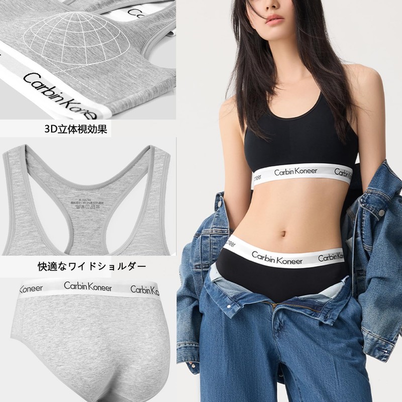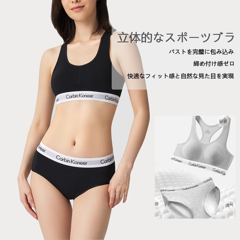 Carbin Koneer Women's Bra, Underwear, Top and Bottom Set, Shorts Set, Cotton, Wireless, Sports Bra, High Elasticity, Soft to the Touch, Day and Night, Night Bra, Breathable, 24 Hours, Daily and