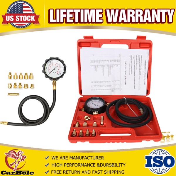 CarBole 13pc Engine Oil Pressure Tester Gauge Diagnostic 500psi Test Kit w/Storage Case