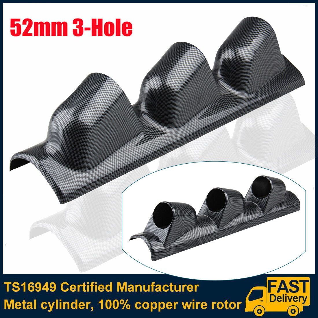 - Car Carbon 2" 52mm Left Auto Carbon Pod Pillar Triple 3 Hole Mount Gauge Holder