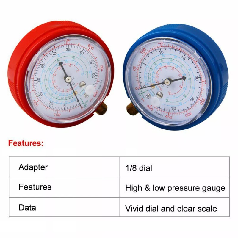 2 PACK LOW AND HIGH - PRESSURE GAUGES PSI KPA FOR USE W/DIFFERENT REFRIGERANTS