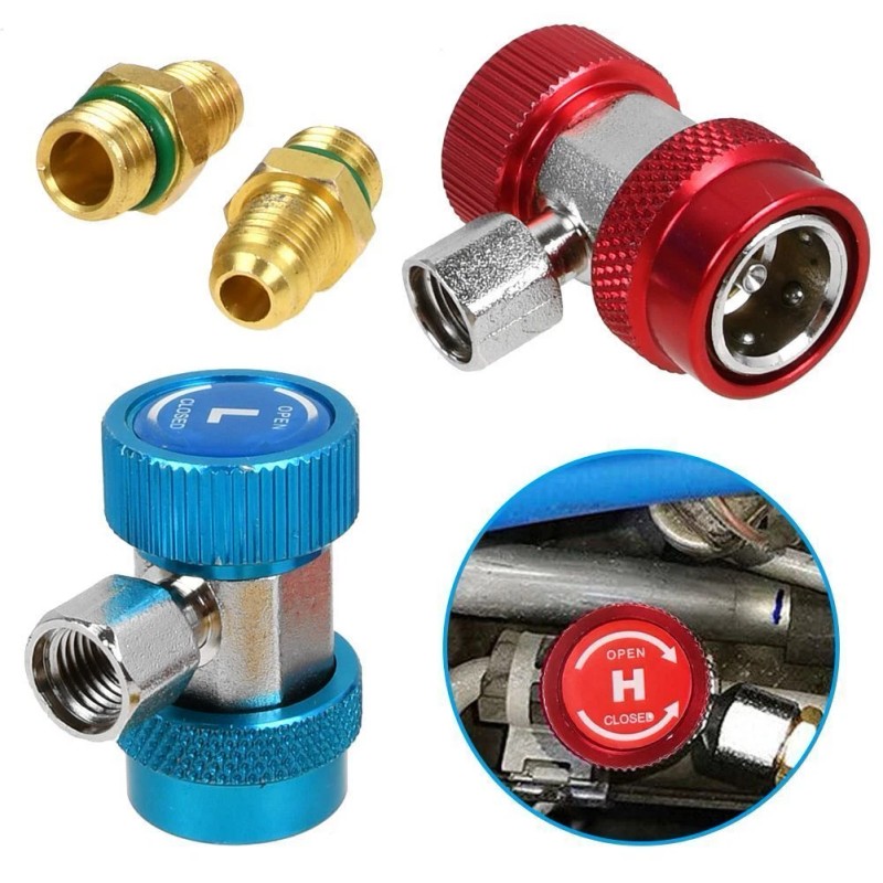 - Blue: Low Side Quick Connector/Adapter (1/4" SAE Male Flare)