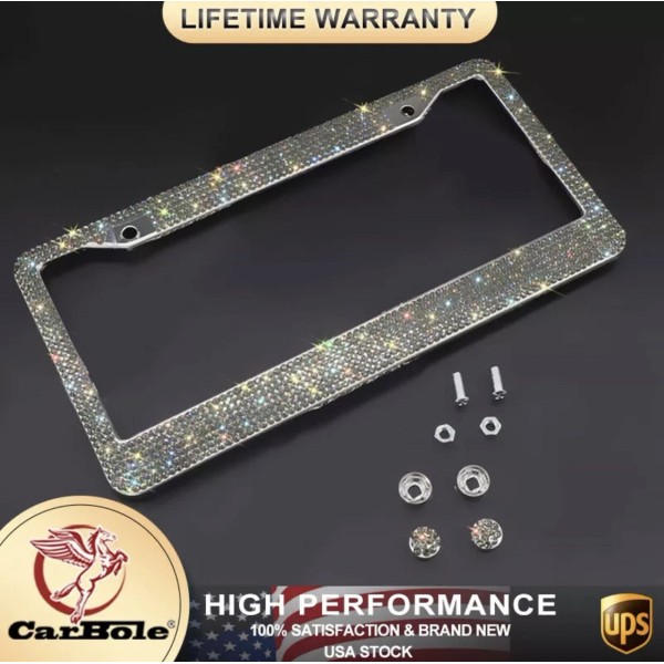 Carbole 2PACK Bling Metal License Plate Frame Tag Sparkling Glitter Crystal Diamond USA