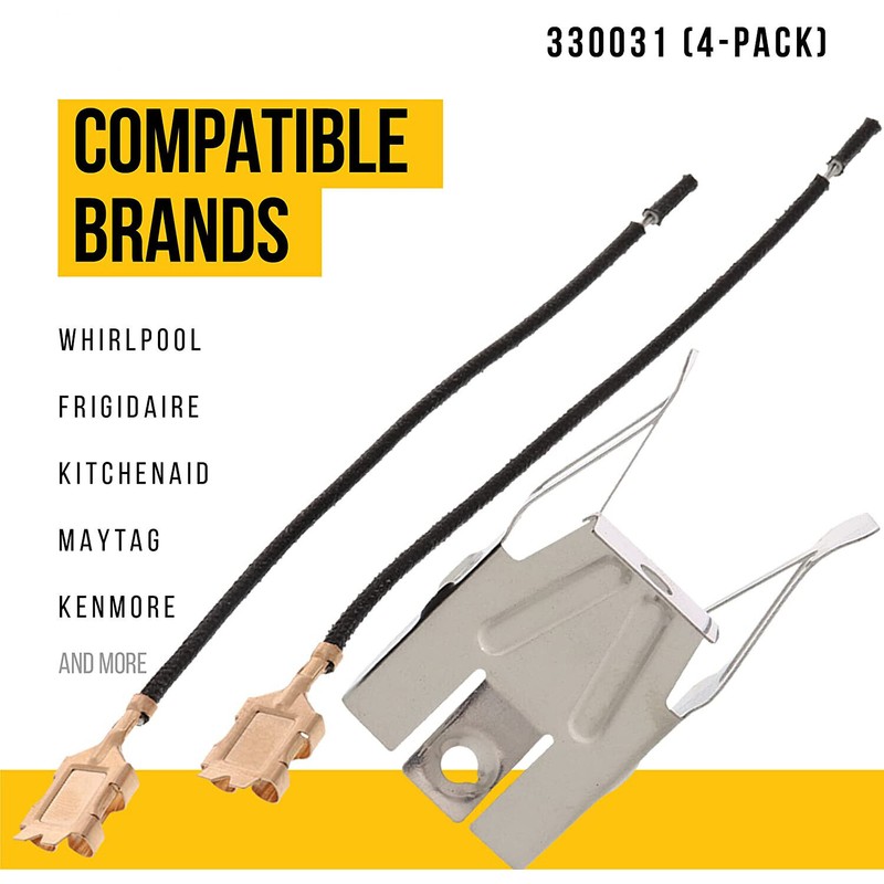 Compatible Brand: Whirlpool: RF315PXYW1 RF360BXXN3 RF362BXBQ1 RF365BXPW0 RF365BXWW1 RF367PXDN0 RF370PXYW0 and more Amana: EHT3302W(P1142446NW) ESS344-OF(ESS3440OF) EST307 FDU185 SBE22AA0(P1142435NW) XST-305 XST2052W(P1133262NW) and more Maytag: CRE300 DCSE600 LCRE300 LCRE655 LCRE683 LCSE601 and more Magic Chef: 38HN-42TVW-EV 8610PA 8610PV Roper: FES310BL0 FES310BL1 FES310BQ0 FES310BW0 FES310BW1 FES310YW0 and more KitchenAid: KECS100SAL6 KECS100SBC3 KECS100SBC6 KECS100SOB5 KECS100SWH3 KECS100SWH4 and more Norge: NEW3G1 Installation Tips: Helpful tools include a screwdriver, wire cutters, a wire stripper, work gloves, and a lighter.Avoid melting the wires and over-melting the heat shrink insulators.