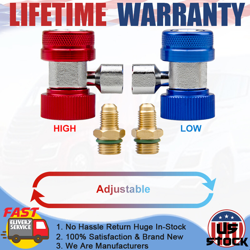 Package Includes: 2x Adjustable A/C Quick Couplers (High & Low Side)