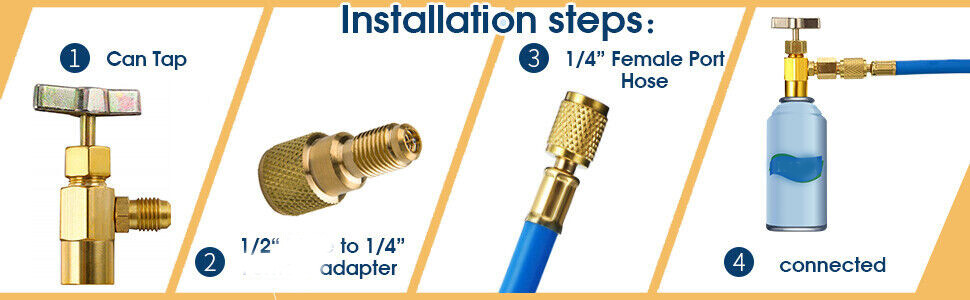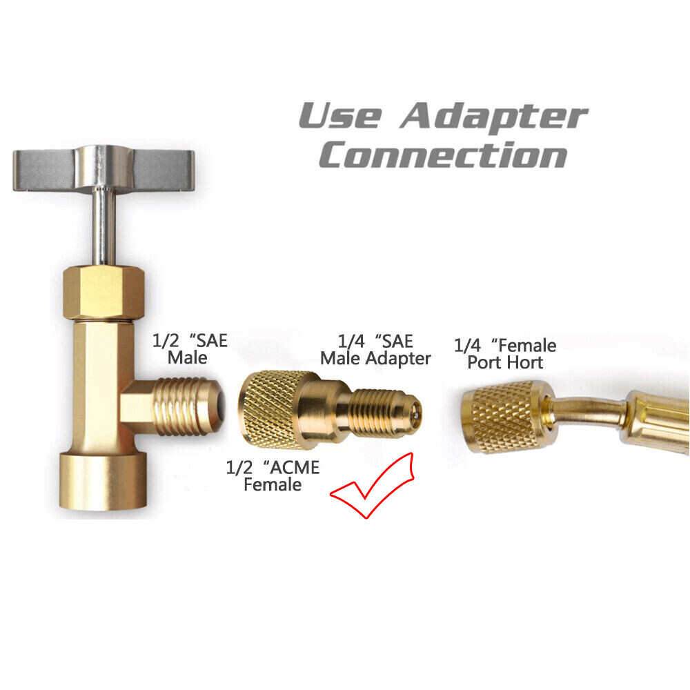 A/C Refrigerant Tank Adapter Valve Can Tap 1/4" SAE Male to 1/2" ACME Female Kit