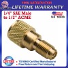 Specifications: This auction is for one brass Adapter 1/4" SAE Male x 1/2" ACME Female Material:Brass ACME Female Size:1/2 Inch SAE Male Flare Fitting Size:1/4 Inch Length: 30mm / 1.18" Brass Tank Adapter. 1/2 Inch Acme Female X 1/4 Inch Male Flare W/ Core. Connects Hose To Tank. overall Dimension 3/4" Female thread:1/2-20 UNF Female Male thread:7/16-20 UNF Male