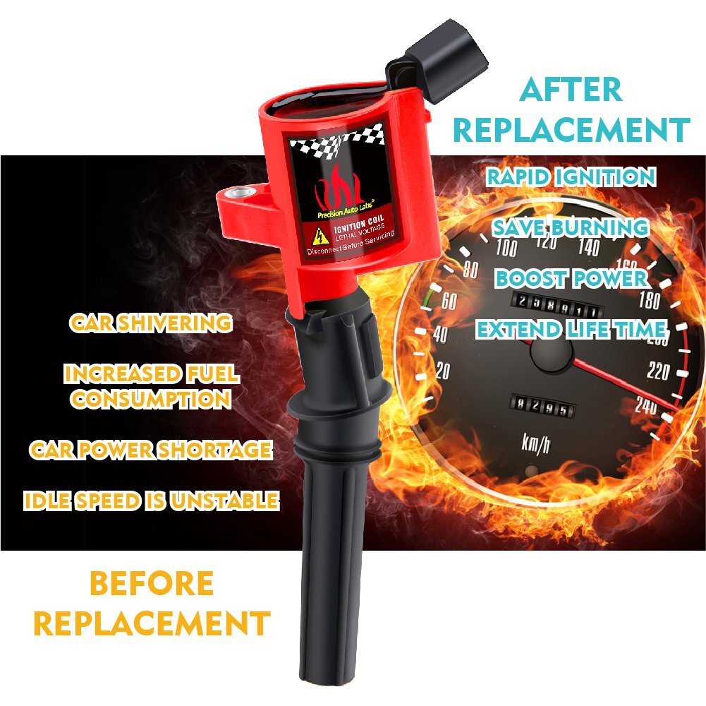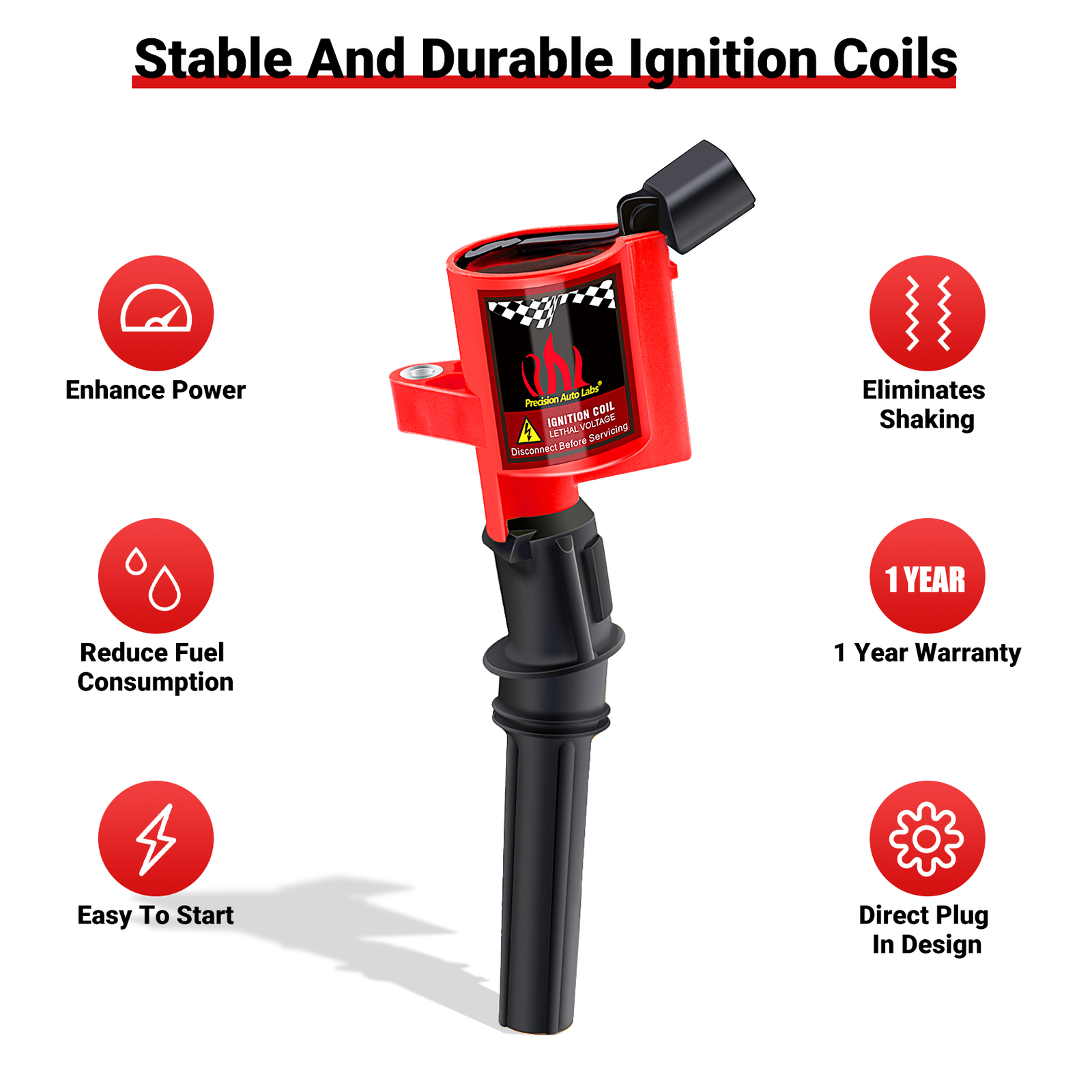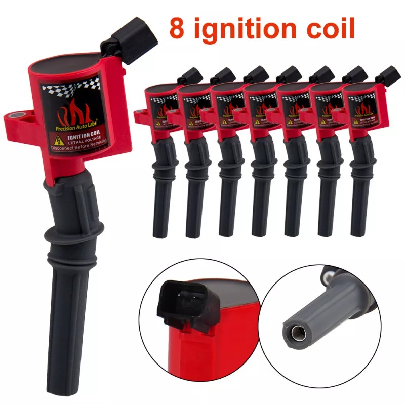 CarBole HIGH OUTPUT ENERGY RED IGNITION COIL & Spark Plugs FITS FORD F150 MUSTANG DG508