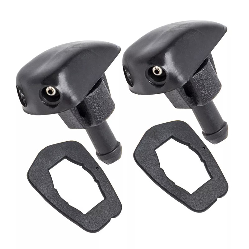 Windshield Washer Nozzle Kit made of premium plastic construction, it is built to long-lasting durability, easy to install, Includes 2 pcs Washer Nozzle and 2 Rubber Gasket.