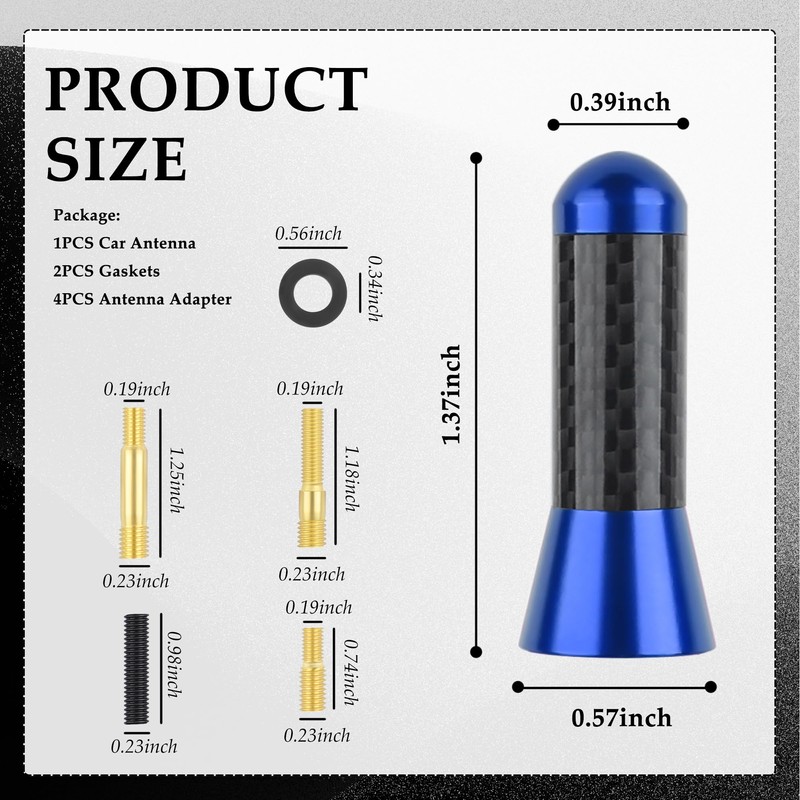Carbon Fiber Car Antenna with 6PCS Antenna Adapter,Universal Stubby Antenna Car Antenna Replacement for Car Truck SUV,The Most Stylish Car Accessories for Car Decoration (Blue)