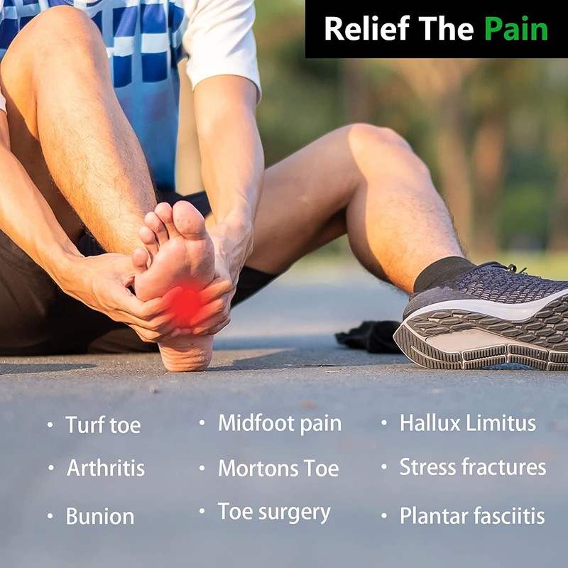 - Pain Relief: I needed it for osteoarthritis in my foot. As a carbon fiber insert in my shoes enough to keep toes from over-extending, without restricting or changing your natural stride. Turf toe relief insole still allowed some movement but reduced pain from too much movement. The rigid toe plate can be used in different athletic shoes like sneakers, hiking boots, baseball, tennis, golf, football, or basketball shoes. Not for dress shoes and high heels
