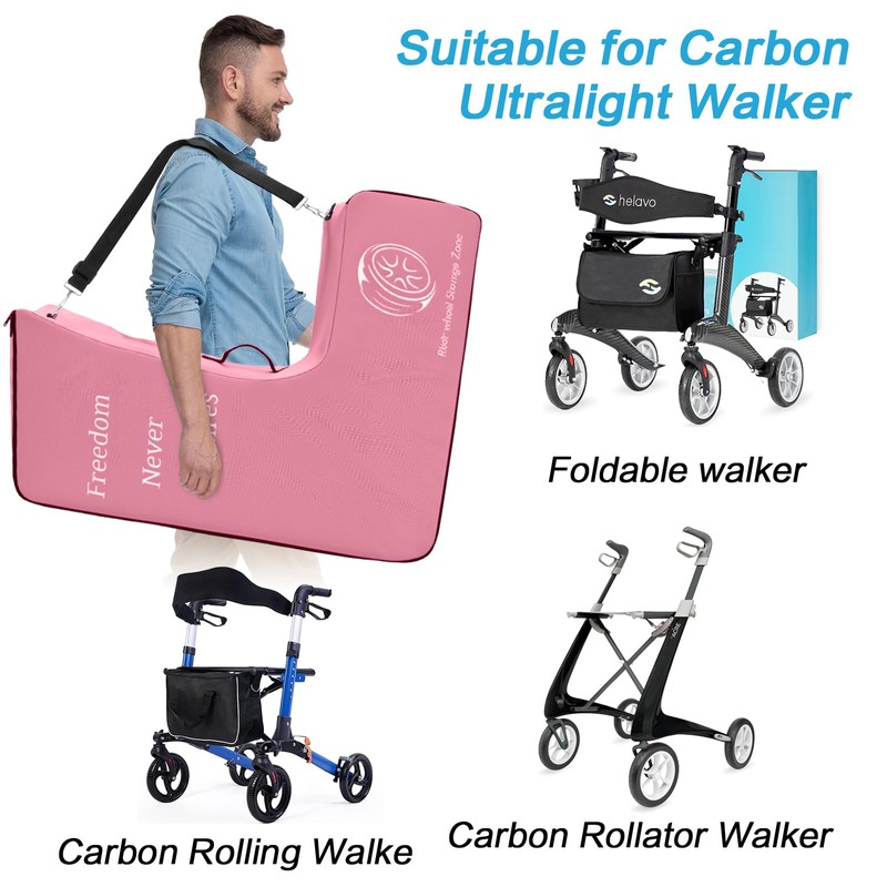 Carbon Ultralight Rollator Walker Travel Bag,Packing Bag-Ultralight, Durable, Portable ,Adjustable Shoulder & Hand Straps | Fits All Models for Carbon Fiber Walker,Carbon Rollator Accessory (Pink)