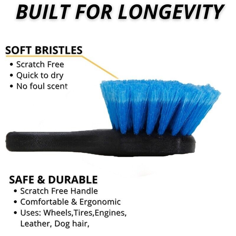 - Stiff Blue Bristles: Effectively brush away brake dirt, mud, and grime from tires, ensuring a deep clean.