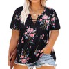 CARCOS Plus Size Tops for Women 4X Lace Up Floral Shirts V Neck Short Sleeve Black Tunics Casual Criss Cross Tshirt Loose Fit Tees for Spring Summer 4XL 24W 26W