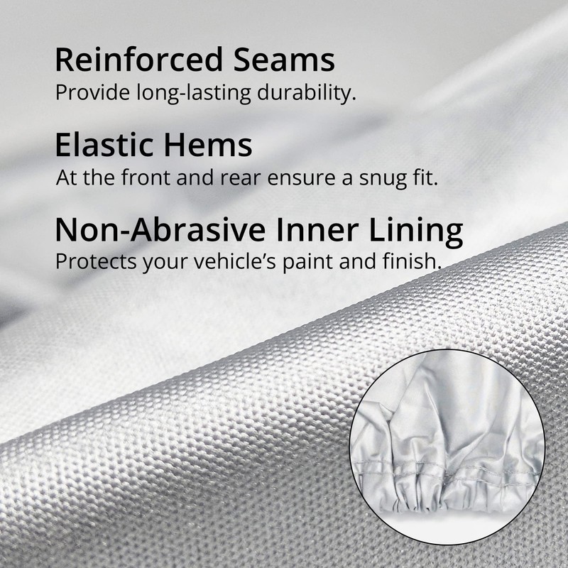 - CONSTRUCTION: High quality breathable fabric with double stitched, welded, and reinforced seams made for indoor and outdoor elements, especially high moisture climates. Multi-layer fabric with micro-porous film to ensure breathability. Features a non abrasive interior to protect vehicle finish. Elastic front and rear hem for a snug fit.