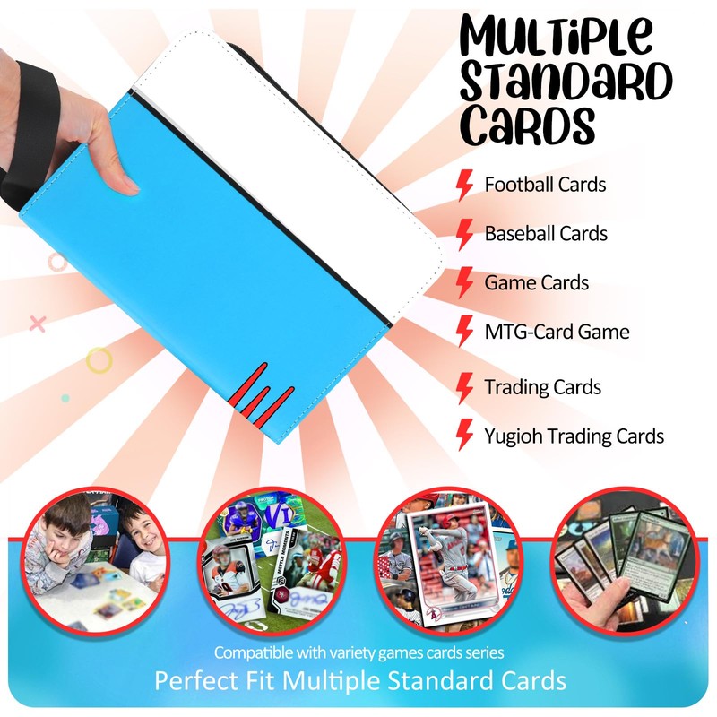 • đŸ”„ă€Suitable for various cards】Our card binder is compatible with various cards of standard size. For example: football cards, baseball cards, playing cards, credit cards, Yu-Gi-Oh card game, Skylanders, World of Warcraft, MTG card game, Dutch Blitz card game, etc. This game card collection binder is inspired by anime and games, meeting the needs of game card enthusiasts to collect cards