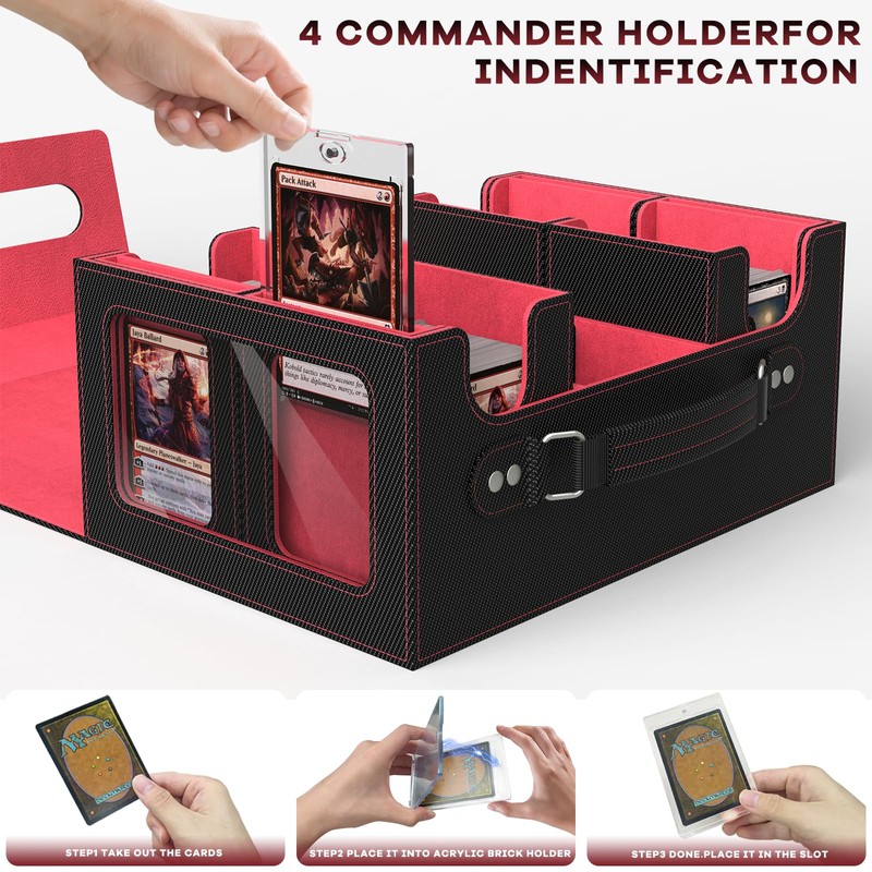 - Customized for Professional Players:Our MTG Commander Display Deck Box is designed for Commander players. The card box has four independent and easily detachable boxes. Each independent small box has a side window for your commander or avatar to quickly and easily identify each set of cards inside the box. It is an ideal choice for organizing the Commander deck