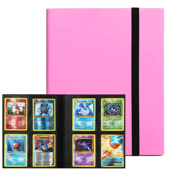Card File, Card Binder, Sticker File, 4 Pockets, Holds 160 Cards, PP Material, Elastic Bandage Binding, Card Sheets, Collects Other Game Cards (4 Pockets, Pink)