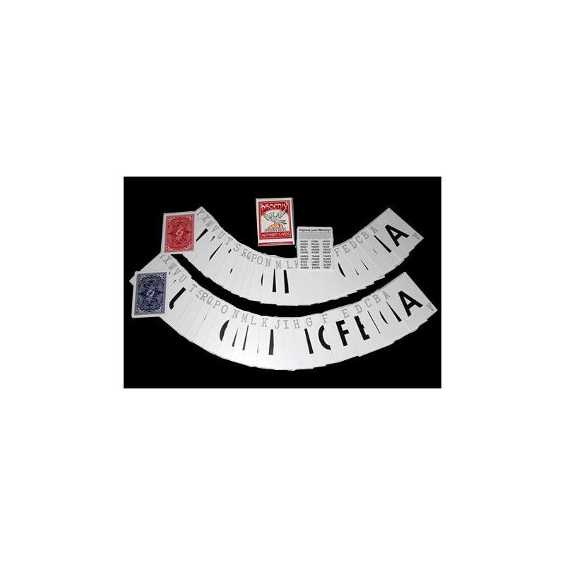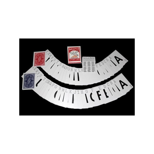- This set contains a set of 26 cards marked with a red back, the sides of which are from the letter A to Z, and the same set marked with a blue back, inside a red case