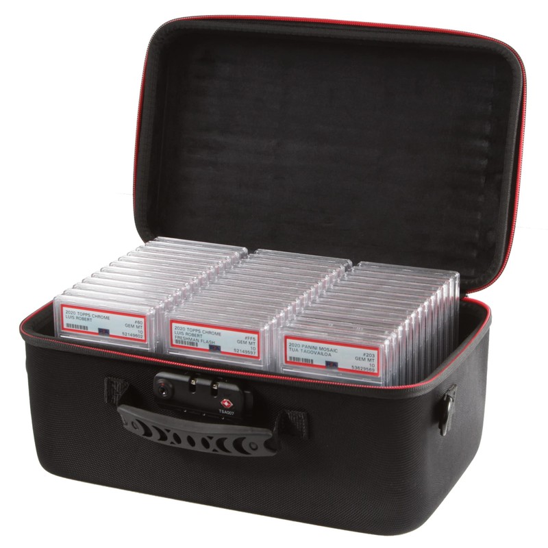 • PRO PROTECTION: Built to protect your collection. Interior foam holds and protects your PSA and CSG graded cards firmly and the exterior built of strong textured EVA with lockable zippers keeps your collection secure