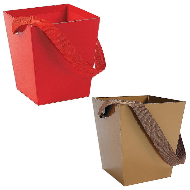 - 6 Cardboard Red Buckets with Ribbon Handle