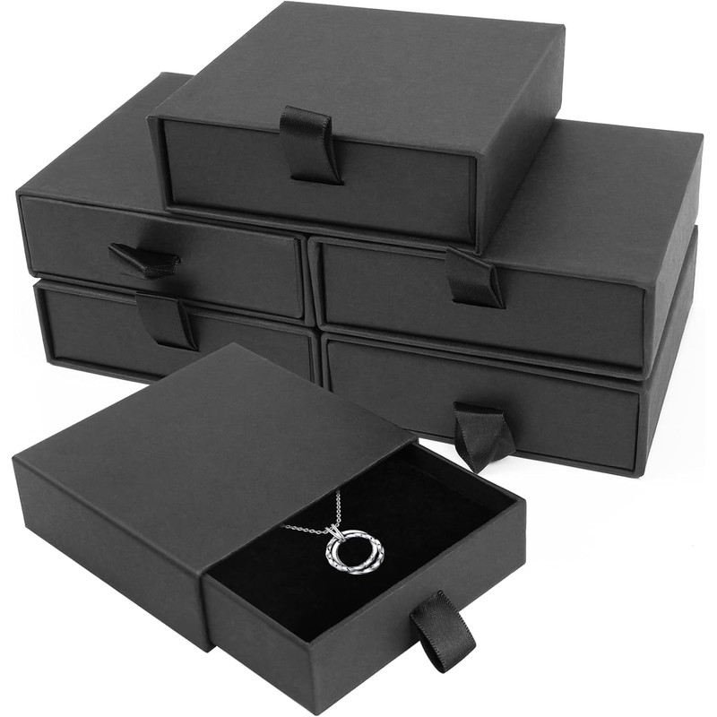 - High quality: This cardboard jewelry box is made of high quality cardboard, with matte black surface, sturdy and durable, not easy to deform and damage, will not fade, protect jewellery from dust and transport damage.