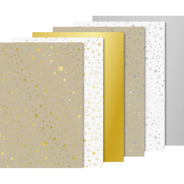 With this cardboard pad "stars" in DIN A4 format, you can make wonderful crafts for Advent and Christmas time. Design from the cardboard with a paper weight of approx. 220gsm unique greeting cards, Christmas tree decorations, gift wrapping or scrapbook albums. The motif box is printed on one side with golden and silver star with a high-gloss finish. You will receive 12 sheets in 6 different designs. Can be combined with each other.