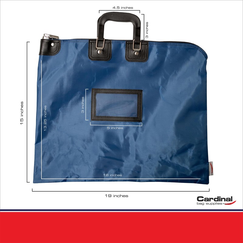 The Locking Courier Bag You Can Rely On Secure, durable, portable - This HIPAA-compliant lockable document pouch is your trusted companion for safe document transportation. Now upgraded with robust hard grip handles, this large money bag ensures comfortable carrying on the go. Engineered with high-performance materials, including a heavy-duty nylon zipper and laminated nylon material, this cash handling essential offers a tough, easy-clean surface that withstands the demands of daily operations. Effortless Document Security Equipped with a standard pop-up lock with 2 keys, the large bank bag provides maximum protection for sensitive documents, no matter if locked with a key. Complete with a sleek black-framed cardholder (3" x 5"), our security bags with lock let you showcase business cards or ID tags for fast identification. Security Meets Convenience Compact at 15 x 19 inches, the courier bag with lock strikes the perfect blend of portability and capacity, offering ample space for documents. Whether you’re transporting HIPAA-compliant files, coins, or other legal documents, our lock bags are the smart and secure choice for busy professionals.