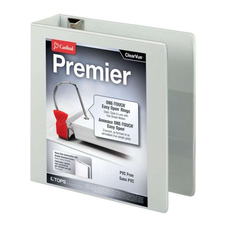Cardinal Binder Premier EasyOpen Slant-D Ring, ClearVue Customizable Covers, 3-Inch, 650 Sheet Capacity, Non-Stick, White
