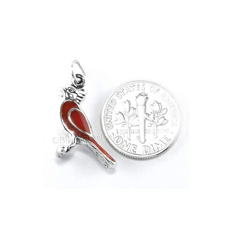 CARDINAL Charm Pendant CHRISTMAS Bird STERLING SILVER 3D 925 .925 red enamel