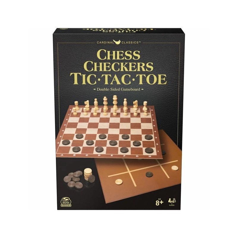 Cardinal Chess, Checkers & Tic Tac Toe One Size Brown Double Sided Gameboard