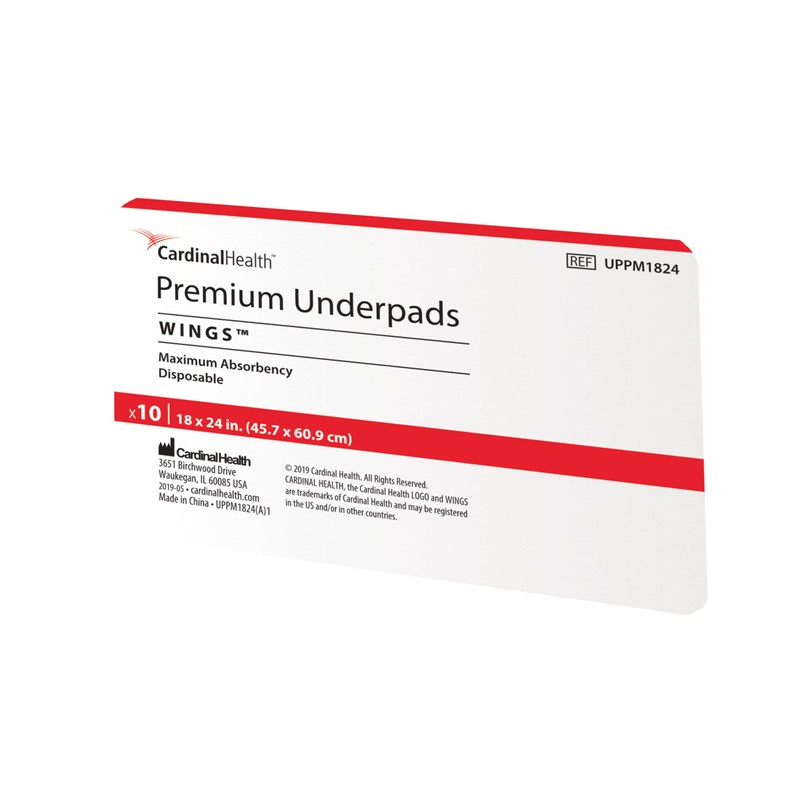 Cardinal Health™ Premium Underpad, Wings™ Maximum Absorbency, Teal, 31 x 36IN, Pack of 10