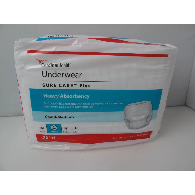 Cardinal Health Underwear 20 count pack SURE CARE Plus Heavy Absorbency S/M