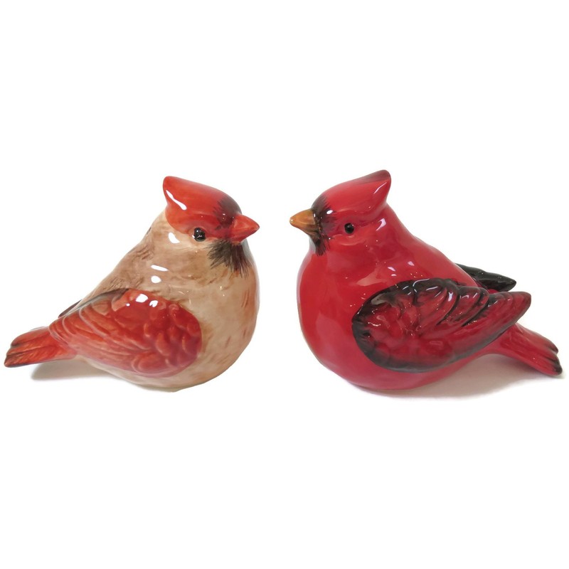 - ''' Christmas Cardinal Salt and Pepper Shaker Set features a male and female cardinal; Perfect for winter decorating#||# Salt and pepper shakers are made of ceramic dolomite with a glossy red finish#||# Salt and pepper shaker set measures approximately 3.5 x 2.75 x 2.25 inches#||# Perfect for display and functional use on your dining table#||# Ships in protective packaging'''