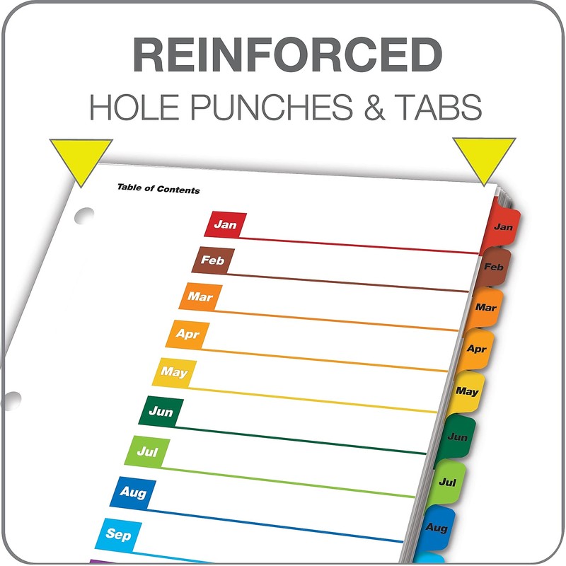 - Dividers have reinforced tabs and ring edges for long life; choose these durable tab dividers for 3 ring binders overworked at school, home or office