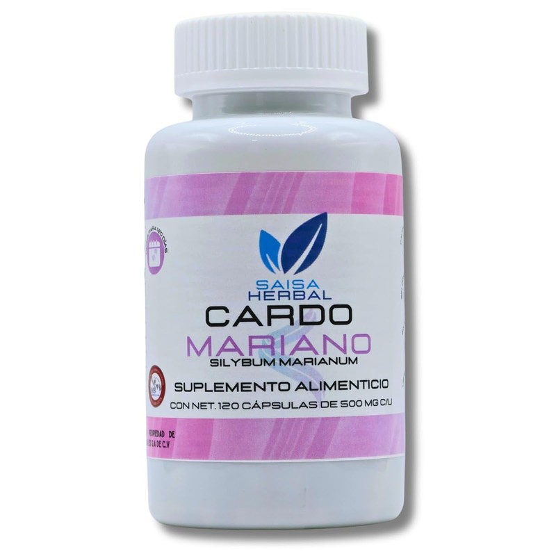 Cardo Mariano puro con 120 cápsulas de 500 mg c/u.