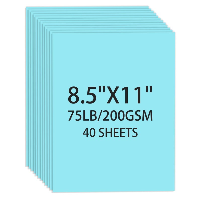 Cardstock 8.5 X 11, 40 Sheets Light Blue Card Stock, 75lb/ 200gsm Copy Paper, Cardstock Printer Paper For Art, Drawing, Invitations, DIY Cards, Watercolor, Craft, Construction, School & Office Supplie