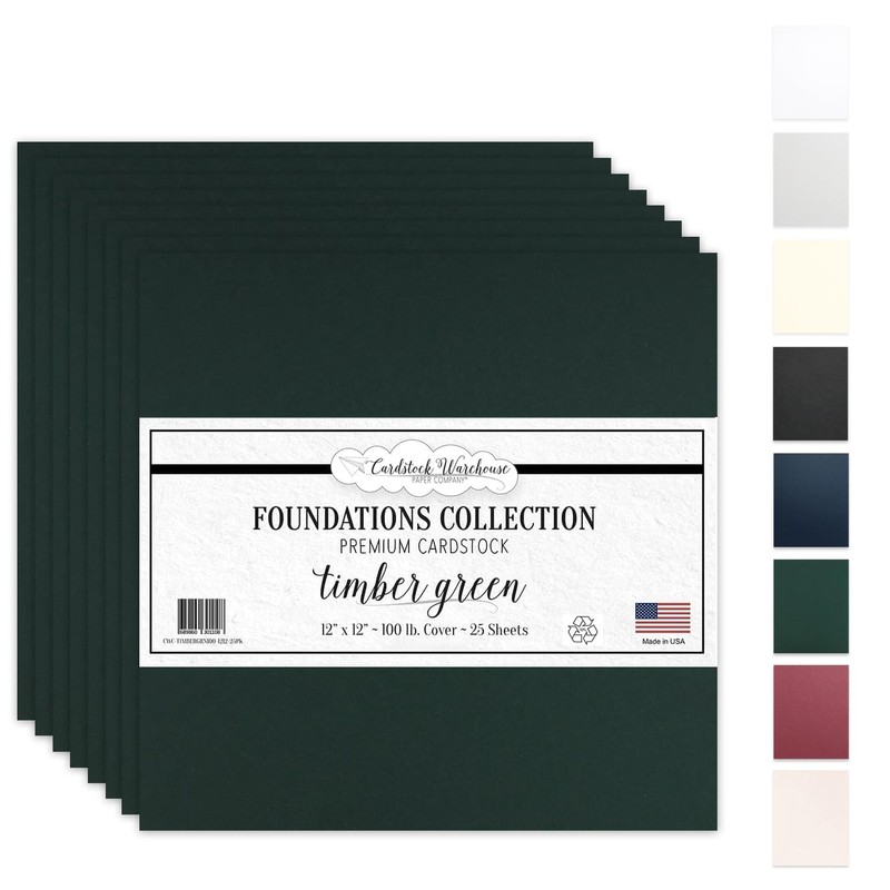 Cardstock Warehouse Foundations Timber Green Forest - 12 x 12" - 100 Lb. / 270 Gsm 100% Recycled Premium Cardstock Paper - 25 Sheets
