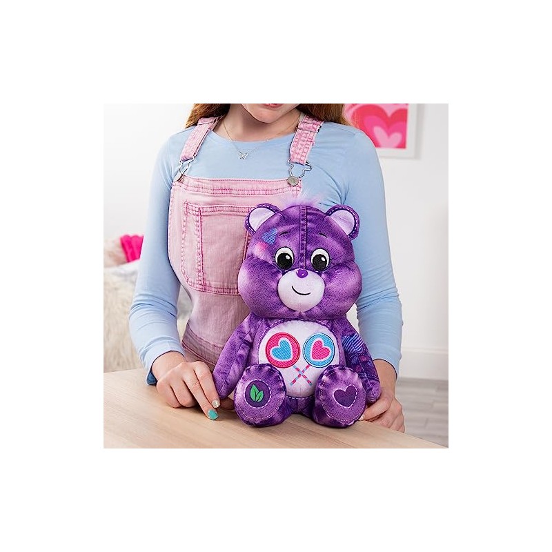 Care Bears 14" Medium Plush Denim Bear - Share Bear - Purple Plushie for Ages 4+ – Stuffed Animal, Super Soft and Cuddly – Good for Girls and Boys, Collectors, Great Valentines Day Gift for Kids