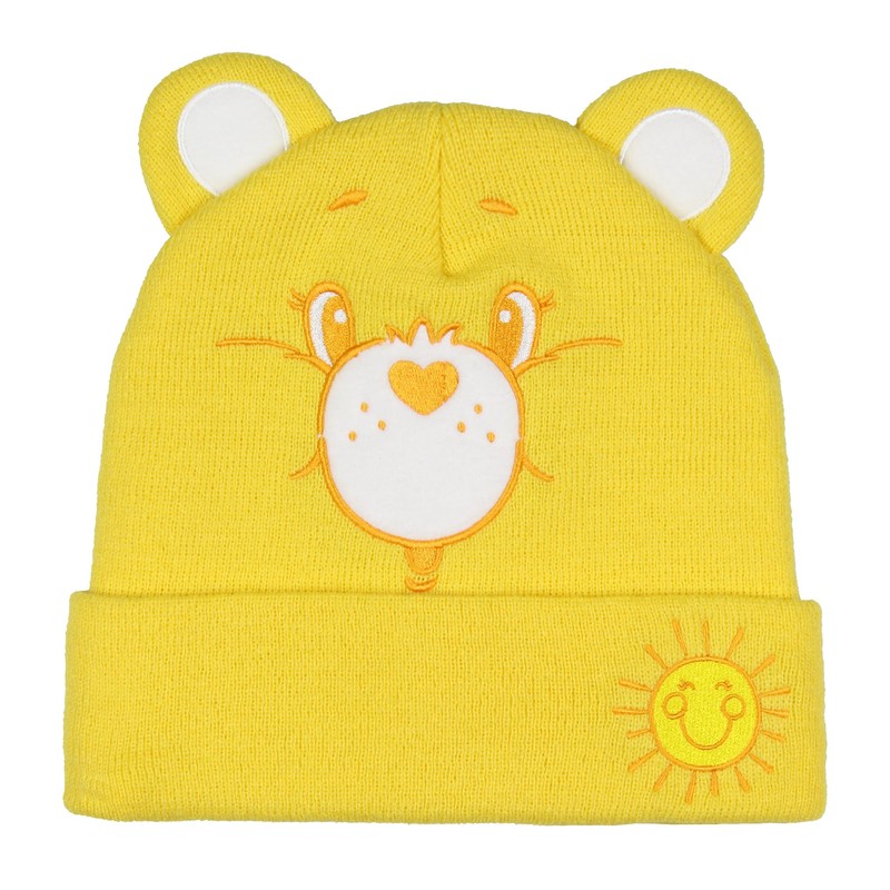 Care Bears Embroidered Face and Belly Badges with 3D Ears Cuff Knit Adult Beanie- 4 Styles Available Grumpy, Share, Cheer, Funshine (Funshine Bear)