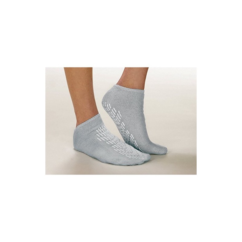 Treads on bottom of sock help prevent slipping. Perfect for home use and all flooring.