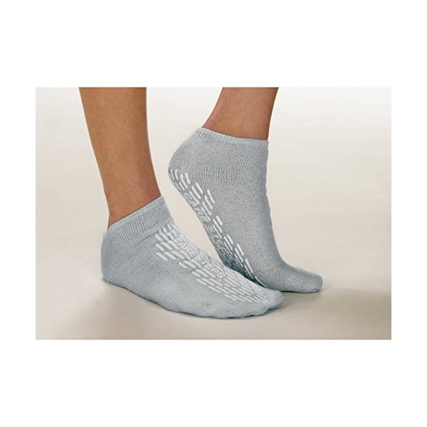 Treads on bottom of sock help prevent slipping. Perfect for home use and all flooring.
