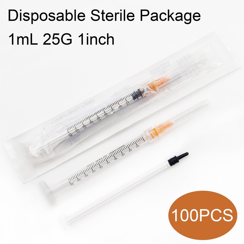 Careach Careach 100 Pack 1mL Syringe 25Ga 1inch, Scientific Labs, Measurement, Individually Wrapped