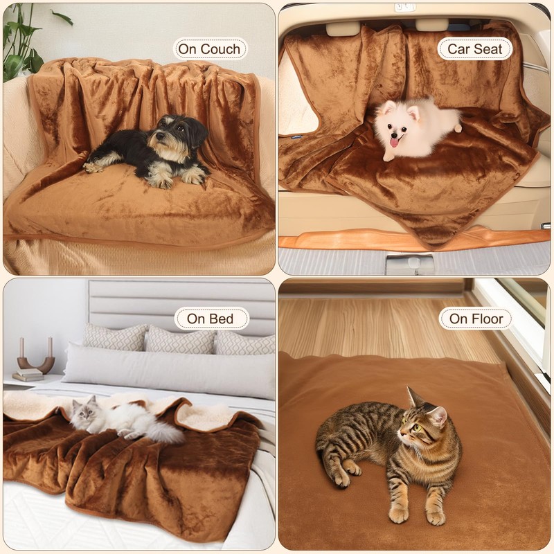 - 【Extra Protection】The reversible pet blanket protects your sofa and floor from spills, pet hair and stains. Waterproof pet blankets are available in different colours and sizes and not only add an elegant touch to your interior, but also provide a waterproof surface so your cats and dogs do not get too wet or cold.