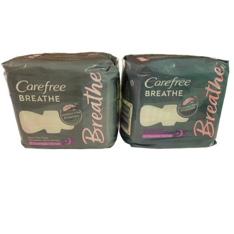 CAREFREE 2X Carefree Breathe OVERNIGHT Ultra Thin Pads With Wings 12 Count Heavy New