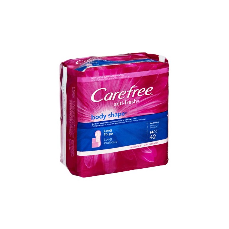 * Feels as soft and thin as a panty * New core proven to absorb 2x more than before**Compared to previous Carefree Body Shape Regular * 8 hour odor control center * *Compared to previous Carefree-+ Body Shape-+ Regular