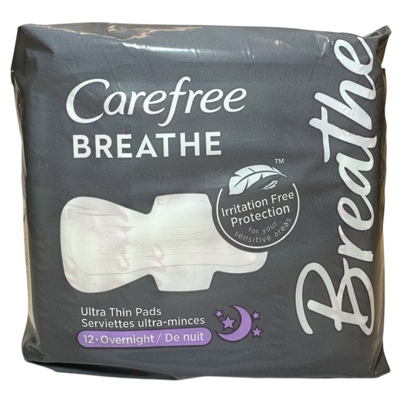 Carefree Breathe Ultra Thin Pads Irritation Free Protection Overnight 12 Ct NEW