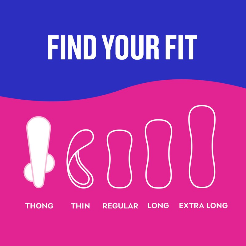 - FIND YOUR FIT – Carefree panty liners are available in different lengths and absorbencies for your unique needs: thong liners, thin liners, regular liners, long liners and extra long liners.